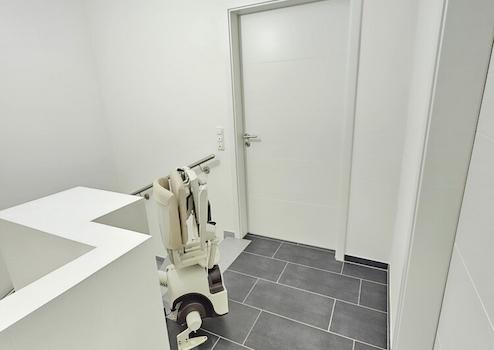 Besonderes Augenmerk wurde auf Komfort und Barrierefreiheit gelegt: Eine bodengleiche Dusche, Haltegriffe im Bad, ein hochwertiger Treppenlift von ThyssenKrupp sowie breite Innentüren machen das Haus auch für Menschen mit eingeschränkter Mobilität äußerst attraktiv.