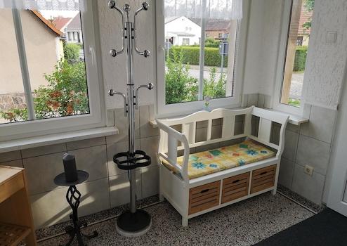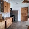 - 60 m² Wohnung oben: Balkon, Bad, Kammer, Küche, 3 Zimmer, ein Zimmer mit Kachelofen, Küche mit Kochhexe