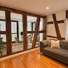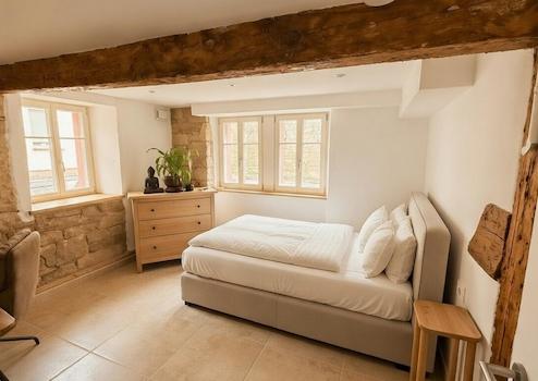 Historische Fachwerkstrukturen, originale Wanddetails und erhaltene Bauelemente erzählen von vergangenen Zeiten – gleichzeitig erfüllt das Gebäude heute modernste bauliche und energetische Standards. Die Sanierung wurde mit großer Sensibilität umgesetzt: Der Charakter blieb erhalten, der Komfort wurde neu definiert.