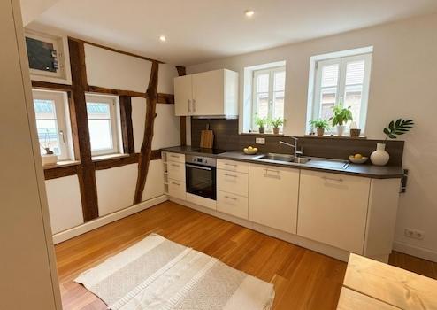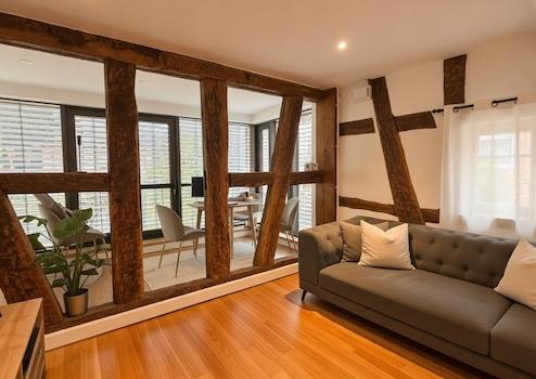 Das Zusammenspiel aus historischem Fachwerk, modernem Design und nachhaltiger Technik schafft eine Wohnatmosphäre, die man selten findet – und die man spürt, sobald man das Haus betritt.