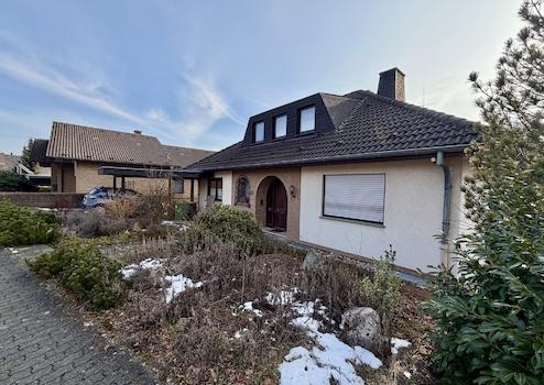 Das Einfamilienhaus mit Einliegerwohnung wurde in den Jahren 1982 bis 1984 in massiver Bauweise auf einem 800 m² großen Grundstück erbaut und die Wohnfläche wurde 1996/1997 durch einen Umbau des Untergeschosses erweitert. Es erwartet Sie nun ein ansprechendes Familiendomizil, das auch sehr gut für generationenübergreifende Wohnkonzepte geeignet ist. Die Hauptwohnung betreten Sie über das Erdgeschoss. Es erwarten Sie auf dieser Etage ein großzügiges Wohn-Esszimmer mit Kamin und angrenzender, teilweise überdachter Terrasse mit Fernblick, ein Schlafzimmer, ein Kinderzimmer, ein Bad mit Dusche und Wanne sowie ein Gäste-WC. Über eine Wendeltreppe gelangen Sie in das Dachgeschoss, wo ein weiteres Zimmer bereits als Wohnraum ausgebaut wurde. Zusätzliche umfangreiche Ausbaureserve ist hier noch vorhanden und die Errichtung einer Dachloggia wurde vorbereitet. Neben Abstellräumen und Heizungsraum ist im Untergeschoss eine Wohnung mit 3 ZKB und Freisitz integriert. Die Wohnung verfügt über einen separaten Eingang.
