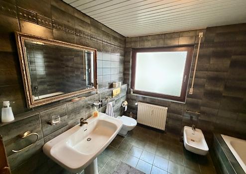 Das Haus ist mit einer Buderus-Ölzentralheizung von 1997 sowie Fußbodenheizung im Erdgeschoss ausgestattet. Die Fenster bestehen aus Holzrahmen mit Isolierverglasung. Die Fußböden sind mit Fliesen, Parkett und Laminat belegt. Das Bad in der Hauptwohnung verfügt über Dusche und Wanne, in der Einliegerwohnung ist ein Duschbad vorhanden. Die Bausubstanz ist solide, es empfehlen sich aber modebedingte Renovierungen sowie die Pflege der Außenanlagen und des Grundstücks. An der Fußbodenheizung steht eine Instandsetzung an, die Kosten dafür betragen ca. 2.000 €.