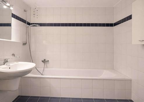 - Badezimmer mit Badewanne und WM-Anschluss