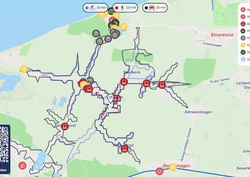 Bad Doberan bietet eine gute Infrastruktur mit Einkaufsmöglichkeiten, Schulen und medizinischer Versorgung. In Heiligendamm (8 km), dem ältesten deutschen Seebad, lädt die historische Bäderarchitektur zum Verweilen ein. Kühlungsborn (15 km) begeistert mit einer langen Strandpromenade, gehobener Gastronomie und vielseitigen Freizeitangeboten. Rostock, als wirtschaftliches Zentrum der Region, bietet zahlreiche kulturelle und berufliche Möglichkeiten.
