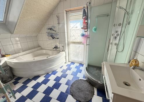 - Tageslichtbad mit Whirlpool-Badewanne, Dusche mit Massagedüsen, WC und Waschbecken
