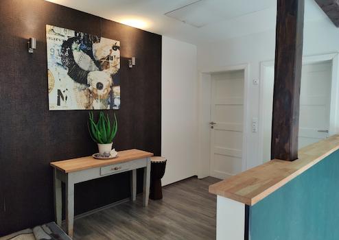 2014 wurde das ehemalige Wirtschaftsgebäude eines angrenzenden Bauernhauses zu einer Doppelhaushälfte stilvoll umgebaut. Dieser linke Gebäudeteil ist nicht unterkellert.