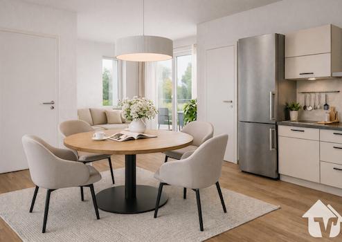 Diese 3-Zimmerwohnung im ersten Obergeschoss besticht durch ihre klare Struktur, viel Tageslicht und ein stimmiges Raumgefühl. Der weitläufige Wohn- und Essbereich mit offener Küche bietet großzügige Platzverhältnisse und wird durch große Fensterflächen angenehm hell und freundlich. Vom Wohnbereich aus öffnet sich der Zugang auf den Balkon, der zum Entspannen und Genießen der ruhigen Umgebung einlädt. Das Schlafzimmer ist komfortabel dimensioniert und schafft einen Rückzugsort mit Wohlfühlatmosphäre. Ein weiteres Zimmer bietet flexible Nutzungsmöglichkeiten – ob als Homeoffice, Gästezimmer oder Raum für persönliche Hobbys. Das barrierefreie Bad überzeugt mit moderner Ausstattung und klarer Gestaltung, während der praktische Abstellraum in der Wohnung sowie ein zusätzlicher Abstellraum im Treppenhaus für Ordnung und Funktionalität sorgen.