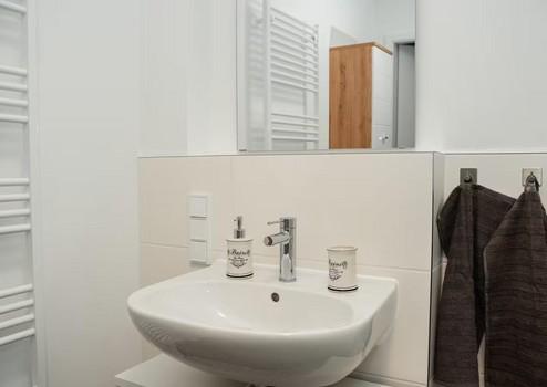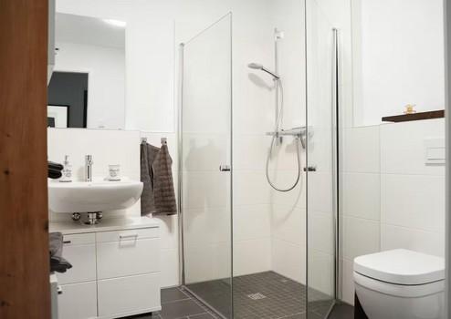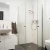 Der edle Marken-Vinylboden in Kombination mit Fußbodenheizung sorgt in allen Räumen für ein angenehmes Wohngefühl. Das modern gestaltete Badezimmer verfügt über eine bodengleich geflieste Dusche, hochwertige Fliesen sowie einen praktischen Handtuchheizkörper.