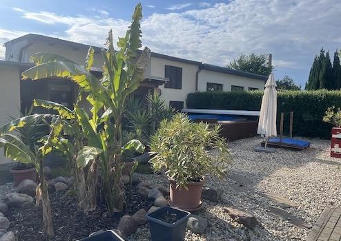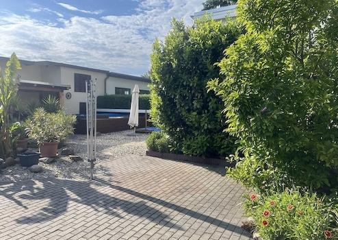 Auf dem großzügigen, liebevoll angelegten und mit altem Baumbestand versehenen Grundstück haben die jetzigen Eigentümer ein kleines Paradies geschaffen. Ein Bachlauf, ein Pool, schön angelegte Blumenbeete sowie die große Rasenfläche bieten Ihnen genug Platz für Erholung, Entspannung und Gestaltung. Der vorhandene Brunnen ( 20 m tief, mit Nachbarn genutzt), welcher mit der Gartenbewässerungsanlage + Sprinkleranlage gekoppelt ist sowie der Rasenroboter helfen mit modernster Technik bei der Pflege des Gartens. Im hinteren Bereich des Grundstücks befinden sich Nebengebäude mit einer überdachten Terrasse, sowie 2 Garagen.