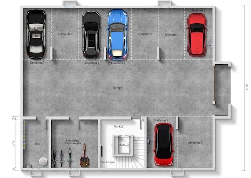 Eine Tiefgarage mit integriertem Fahrradraum sorgt für Bequemlichkeit, garantiert Komfort und Flexibilität.