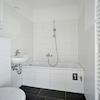 - modern gefliestes Wannenbad mit Waschmaschinenanschluss & praktischen Handtuchheizkörper
