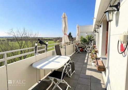 • Großzügiger Balkon über die gesamte Wohnungsbreite mit freiem Feldblick