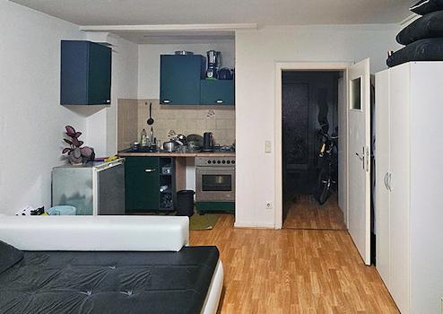 Zentral gelegenes Apartment mit offener Küche, Badezimmer mit Dusche und WC sowie einer Zentralheizung.