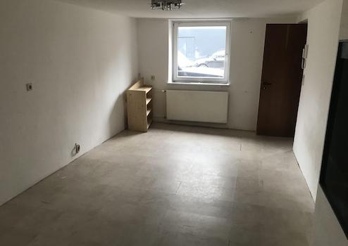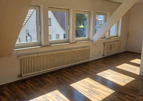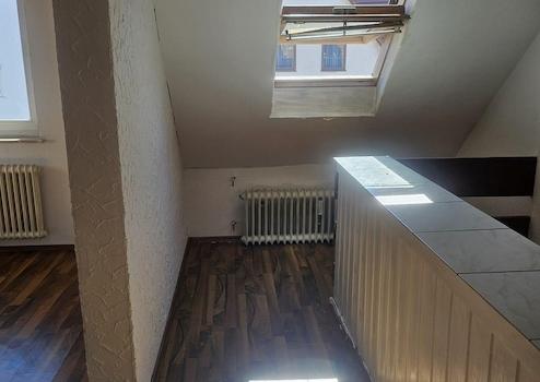 DG: 5 Zi. Maissonette (116,23 m² Wfl.) mit Küche und Bad und 2 WCs. Kaltmiete 850,- € inkl. Garage und Abstellplatz vor der Garage.