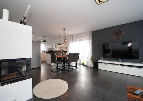 Vom Flur aus lassen Sie Ihren Blick in das großzügige Wohn- und Esszimmer schweifen. Das große, lichtdurchflutete Wohnzimmer mit Essbereich lädt zum Verweilen und Entspannen ein, der Kaminofen für kalte Tage trägt zur Wohlfühlatmosphäre bei. Zaubern Sie sich im Herzstück Ihres Zuhauses eine Ruhezone nach Lust und Laune!