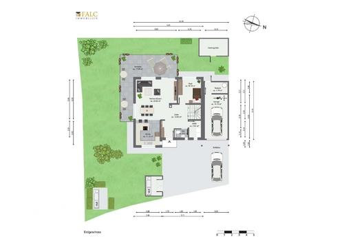 Eine Terrasse in L-Form zur Süd-, Ost- und Westseite ausgerichtet verspricht lange Sonnenstunden. Von hier aus gelangen Sie zu Ihrer grünen Oase, die reinste Wohltat für Sonnenanbeter verspricht ausreichend Platz für gesellige Abende mit Familie und Freunden. Ihre Kinder können unbeschwert im Freien spielen, während Sie sich mit einem guten Buch entspannen. Ihren Rasenmäher und andere Gartengeräte ruhen sicher verstaut im Gerätehaus.
