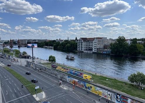 With approx. 57 m². of living space, the apartment offers a bright living and dining area and a bedroom with floor-to-ceiling windows. The modern kitchen is fully equipped and the high-quality en-suite bathroom features a rain shower. The special ceiling-cooling and floor-heating ensure a comfortable indoor climate. A seperate guest WC and a washer-dryer complete this attractive offer. The highlight of this apartment is definitly the spacious Loggia (approx.5,8 m²) which offers a wonderful view of the River Spree, the historical Berlin Wall and the famous Oberbaum Bridge.
