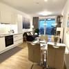 Mit ca. 57 m² Wohnfläche verfügt die Wohnung über einen hellen Wohn-Essbereich und ein Schlafzimmer mit bodentiefen Fenstern. Der Essbereich verfügt über eine moderne Einbauküche, die vollständig mit Besteck sowie sämtlichen Kochutensilien ausgestattet ist.