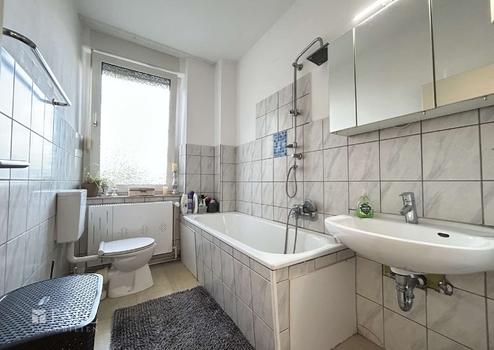 Die Dachgeschosswohnung ist gut vermietet – sie bietet ebenfalls drei Zimmer, Tageslichtbad und Wohnküche. Wenn der Mieter eines Tages einmal ausziehen sollte, könnte hier eine Renovierung in Betracht kommen.