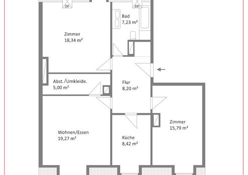 Über die Diele, als zentraler Eingangspunkt der Wohnung, sind alle Zimmer gut erreichbar.