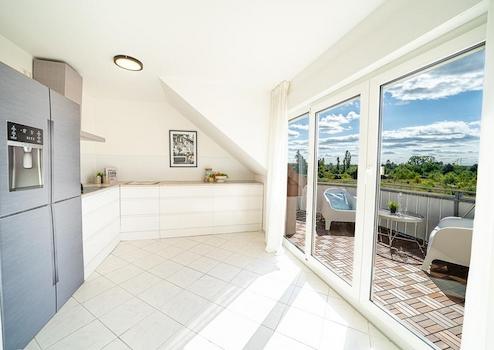 - Offene, große Küche mit direktem Zugang zum Sonnenbalkon und dem Essbereich im Wohnzimmer
