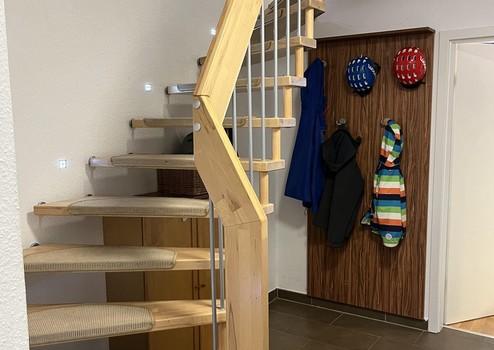 Das dreigeschossige Reihenhaus ist hochwertig ausgestattet und bietet mit seinen 5 Zimmern (Ausbaubar zu 6) Platz für die ganze Familie. Das Energieeffizienzhaus wurde 2009/2010 gebaut. Im Erdgeschoss befinden sich eine fußbodenbeheizte Küche, ein Hauswirtschaftsraum, Gäste-WC, sowie ein großes Wohn- und Esszimmer, welches mit Parkett ausgelegt ist. Der sonnendurchflutete Erker im Wohnzimmer dient als Schaufenster in Ihre grüne Oase und sorgt mit seinen großen Türen für eine direkte Verbindung auf die Terrasse und in den Garten. Im Garten befindet sich ein Stelzenhaus mit Rutsche und Schaukel und der Möglichkeit für einen großen Sandkasten. Der Stahlmattenzaun wurde 2019 durch eine Fachfirma errichtet und sorgt durch seine Begrünung für ausreichende Privatsphäre. Durch das Tor, gelangt man durch den Garten auf den Gemeinschaftsweg hinter dem Grundstück.