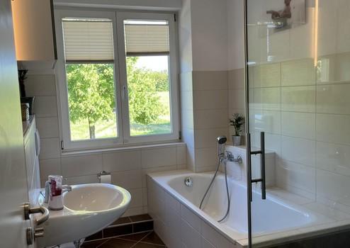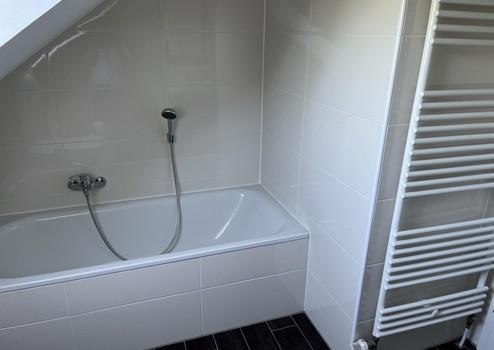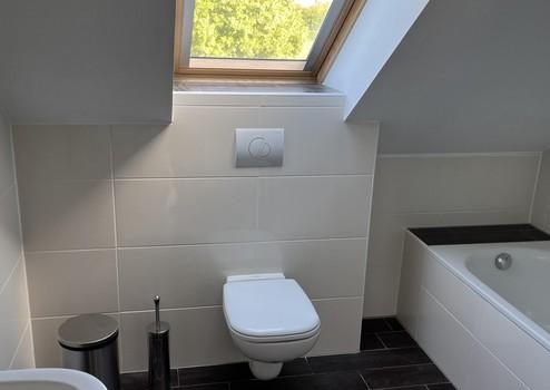 Im Dachgeschoss wurde ein weiteres Badezimmer mit Badewanne integriert. Der restliche Raum des DG wurde offen gestaltet und bietet viele Einrichtung- bzw. Nutzungsmöglichkeiten für die ganze Familie.
