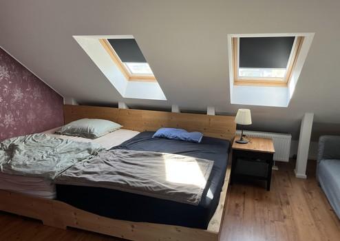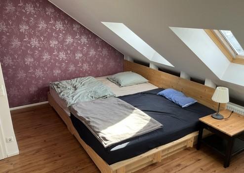 Im den drei anderen Zimmern des OG wurde Laminat verlegt, zwei der Zimmer verfügen über bodentiefe Fenster mit französischen Balkons.