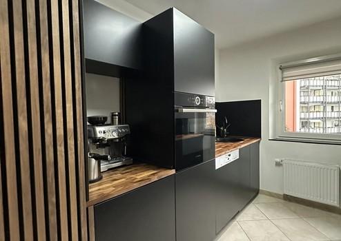 Moderne Fronten, eine stilvolle Arbeitsfläche und hochwertige Elektrogeräte verbinden Funktionalität mit ästhetischem Anspruch.