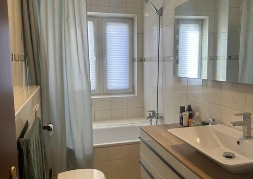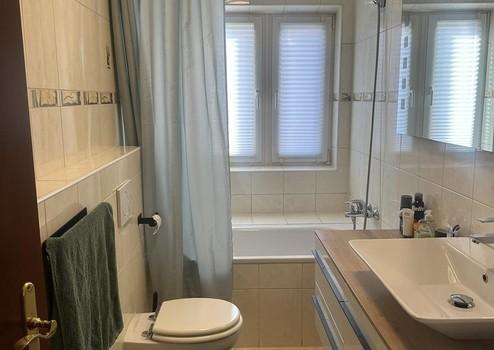 Das modernisierte Badezimmer bietet durch natürliche Belichtung ein angenehmes, freundliches Ambiente.