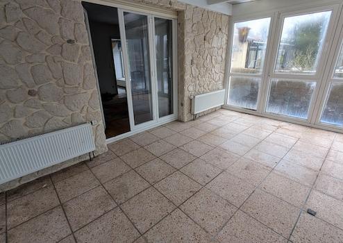 Im Erdgeschoss befinden sich der Hauseingangsbereich mit Flur und Treppe, zwei hintereinander liegende Wohnzimmer mit Kamin, eine Küche, ein Badezimmer, ein Esszimmer und der Wintergarten mit einem separaten Ausgang.