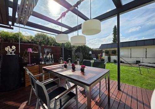 Dieses Haus vereint hochwertige Ausstattung, Design und ein Wohngefühl, das begeistert. Das charmante Zuhause bietet 5 Zimmer, 117 m² Wohnfläche sowie 26 m² Nutzfläche und damit genug Platz für Familien oder Paare. Der Garten und die sonnige Terrasse laden zum Entspannen ein. Ein Hobbyraum und eine voll ausgestattete Werkstatt bieten Raum für kreative Projekte. Die Einbauküche, das Bad mit Fußbodenheizung sowie die Photovoltaikanlage überzeugen zusätzlich. Ein separater Umkleideraum sorgt für Ordnung. Die Wohngegend wurde 1980 Landessieger des Wettbewerbs Wohnen am Stadtrand. Eine Garage für 20.000 EUR ermöglicht bequemes Parken. Gesamtpreis: 815.000 EUR.
