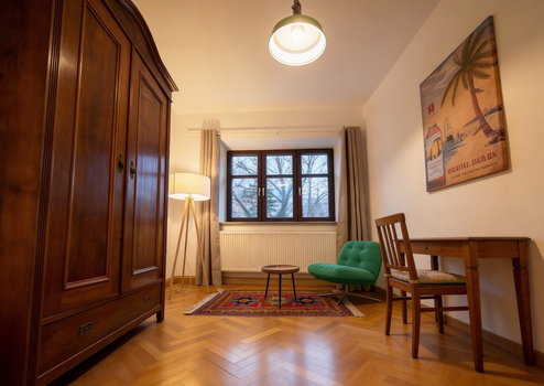 A unique furnished room is available in a quiet professional co-living residence located in a beautifully restored, listed 16th-century building (former liqueur factory) in Augsburg’s historic city center.