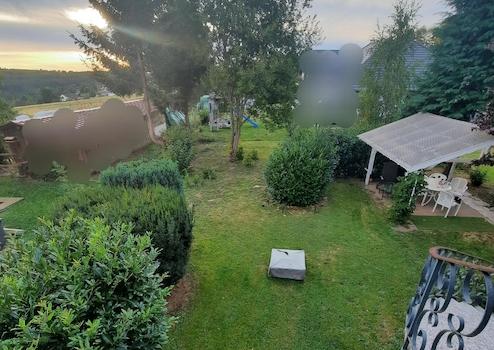 Zum Anwesen gehört ein sehr großer Garten, der viel Platz zum Spielen, Entspannen und Gestalten bietet – ob Trampolin, Sandkiste, Spielburg oder einfach viel freie Grünfläche zum Genießen. Bei Bedarf ist es denkbar einen Teil des Gartens zusätzlich zu bebauen, z.B. mit einem separaten Einfamilienhaus (eine entsprechende Baugenehmigung muss selbstverständlich vom Käufer dann noch eingeholt werden).