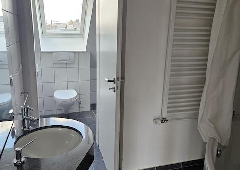 - ansprechendes Vollbad mit Eckbadewanne, beheizbarem