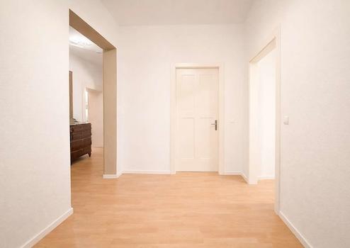 Ein großzügiger Flur bildet den zentralen Zugang zu allen Räumen der Wohnung. Die Einheit verfügt über eine geräumige Küche mit Essnische, die ausreichend Platz für den täglichen Aufenthalt bietet.