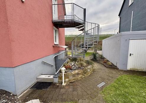 Die Erdgeschosswohnung verfügt über eine Wohnfläche von ca. 90 m² und ist aktuell zu einer Kaltmiete von 8,00 € pro m² vermietet. Hieraus ergibt sich eine monatliche Kaltmiete von 720,00 €. Die Wohnung überzeugt durch ihren rückwärtig gelegenen Garten mit ansprechend gestalteter Terrasse. Vom Garten aus besteht ein direkter Zugang zur Einfahrt auf der rechten Hausseite. Eine Garage befindet sich links neben dem Haus.