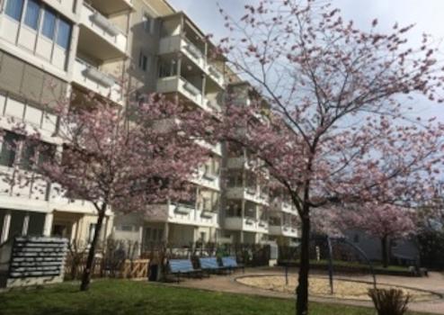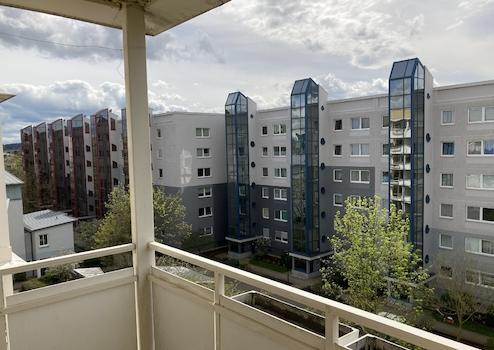 Die Wohnung befindet sich im 4. OG eines Mehrfamilienhauses für Singles, Paare und Familien. Das Objekt verfügt über keinen Aufzug.