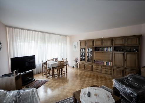 Der lichtdurchflutete Wohn- und Essbereich (ca. 33 m²) mit großen Fensterflächen schafft eine freundliche, offene Atmosphäre. Die uneinsehbare Süd-Terrasse lädt zum Sonnenbaden, Gärtnern oder Entspannen ein. Der separate Hobbyraum im Souterrain ist über das Treppenhaus zugänglich und vielseitig nutzbar – z. B. als Homeoffice, Fitnessraum, Atelier oder Musikzimmer.