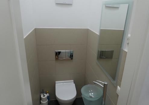 Das luxuriöse Tageslichtbad ist das Highlight der Wohnung: großzügig gestaltet mit eleganter Badewanne, bodengleicher Dusche, Bidet und hochwertigen Armaturen – ideal zum Entspannen und Wohlfühlen.