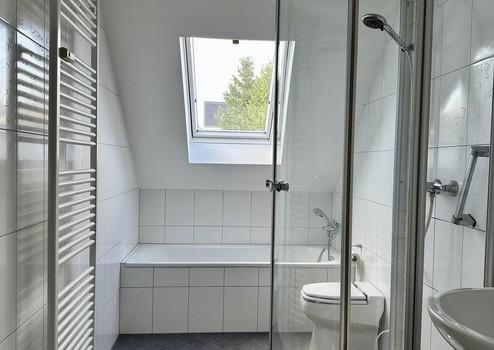 Das Badezimmer lässt keine Wünsche offen: Wanne und Dusche, Handtuchheizung, Dachfenster. Dazu ein separates Gäste-WC mit Fenster.