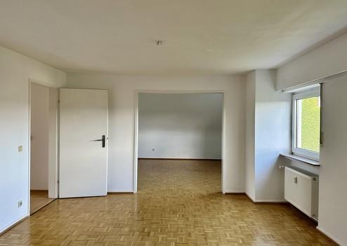 Diese großzügige 3,5-Zimmer-Dachgeschosswohnung verbindet Charme mit Weitblick: Vom Wohnbereich schauen Sie über die Baumwipfel ins Grüne, die Dachfenster bringen zusätzlich Licht von oben. Der offene Wohn-/Essbereich mit Parkettboden und Durchgang zum halben Zimmer eignet sich hervorragend als Homeoffice-Bereich — oder Sie nutzen den flexiblen Grundriss als echte 4-Zimmer-Wohnung.