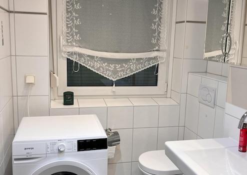 Zur Wohnung gehört eine Einbauküche, ein Balkon mit Markise und ein Kellerraum. Alle Fenster sind außerdem mit Außenrollläden ausgestattet. Das Badezimmer besitzt einen Waschmaschinenanschluss. Badezimmer und Gäste-WC sind bereits modernisiert. Im Badezimmer sind im Januar 2026 zusätzlich alle Wasser Steig-und Fallleitungen erneuert worden. Die Wohnung wird mit Fernwärme beheizt und besitzt eine Warmwasserversorgung. Die Wohnung besitzt einen Glasfaseranschluss. Der Hauseingang ist barrierefrei zu erreichen.