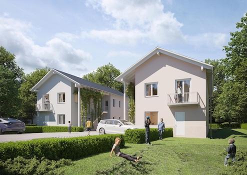 Projekt O17 entsteht in Bernau bei Berlin, Ortsteil Friedenstal: vier baugleiche Häuser mit jeweils drei Wohnungen - insgesamt 12 Wohneinheiten. Die überschaubare Größe schafft ein ruhiges Wohnumfeld mit mehr Privatsphäre als in klassischen Mehrfamilienhäusern.