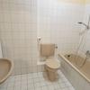 Nebenan liegt das Schlafzimmer, das durch bodentiefe Fenster mit viel Tageslicht versorgt wird. Angrenzend befindet sich das hell geflieste Badezimmer, das mit einer Badewanne ausgestattet ist.