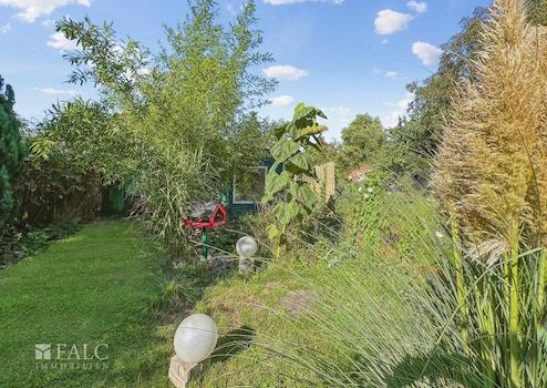 Das Grundstück umfasst insgesamt 805 m², wovon etwa 630 m² als großzügiger Garten hinter dem Haus zur Verfügung stehen – ein attraktiver Mehrwert, der den Wohnkomfort für die Bewohner steigert.