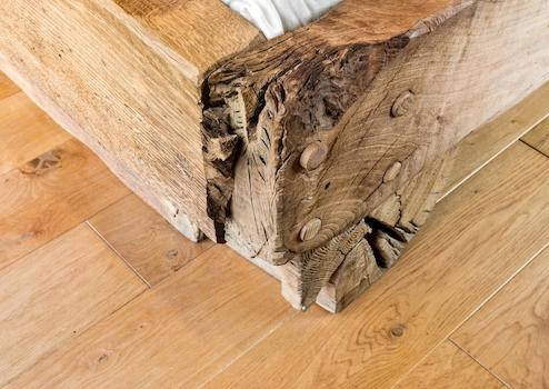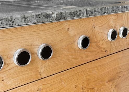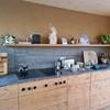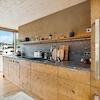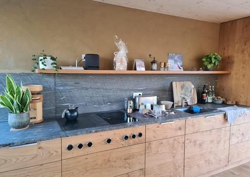 - Echtholzküche mit Naturstein-Arbeitsplatte
