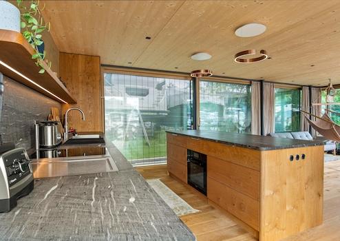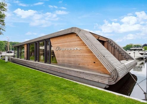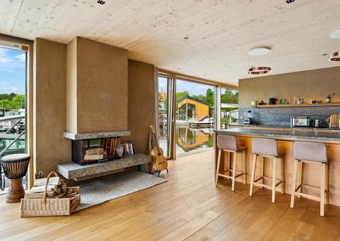 Auf 25 Metern Länge und über 160 m² Gesamtfläche bietet Dir Ohana ein Raumgefühl wie eine Loftwohnung – aber mit Wasserblick in alle Richtungen, privater Dachterrasse, Kamin und hochwertiger Ausstattung.