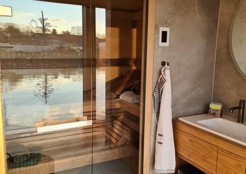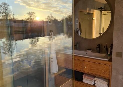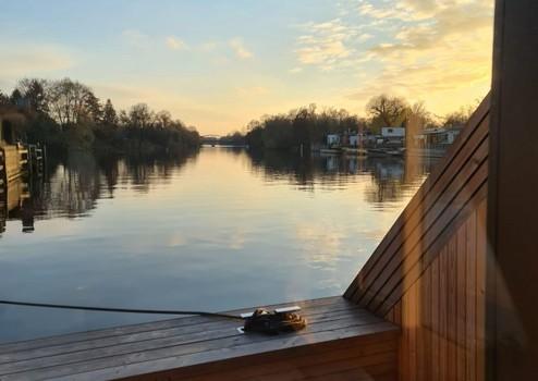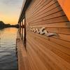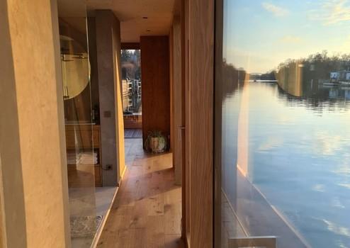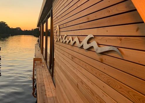 Unikates Wohnschiff/Hausboot mit Rooftop-Terrasse & Kamin | Wohnen & Arbeiten auf dem Wasser