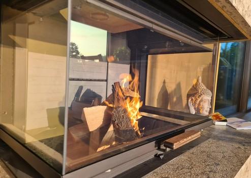 - Attika Echtholz- Kaminofen mit Wärme-Speicherwand